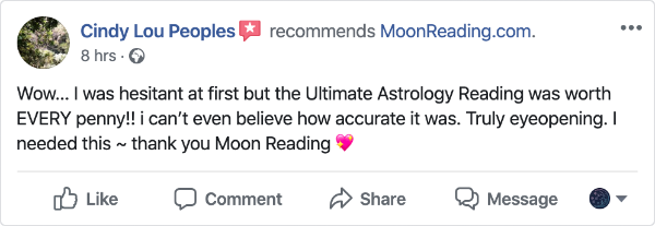 P.S. We currently have a limited-time Secret Bonus where get TWO Ultimate Astrology readings for the price of one! Share one with a friend, or use it to discover a bit more about a special someone in your life :)
